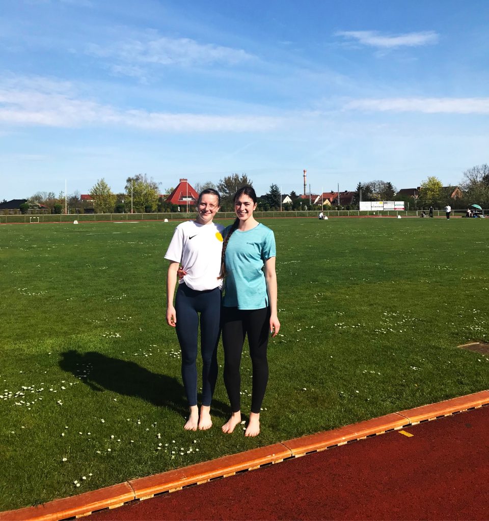 Da beide 7-Kampf machen, ist das Training recht einfach – Anni hat ihre Stärken sicherlich im Hürdenlauf, bei den Würfen, im Weitsprung und wenn sie wütend ist über 800 m, Lole ist sehr vielseitig und besonders laufstark, nur beim Kugelstoßen konnten wir den Schalter noch immer nicht komplett umlegen. Beide bereiten sich auf die MDM in Halle und die NDM in Papenburg vor.
