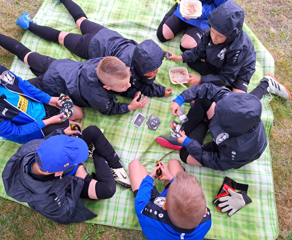 Unsere Jungs zogen als Zweiter ihrer Vorrundengruppe souverän in die Finalrunde ein. Hier kämpften schließlich noch neun Teams im Modus „Jeder-gegen-Jeden“ um den Turniersieg. Die Wartezeit zwischen den Spielen haben sich alle mit Kartenspielen, Taktikbesprechung und kleinen Snacks vertrieben.