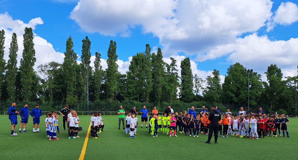 Doch dann…, wegen einer Unwetterwarnung, wurde im Anschluss das Turnier abgebrochen. Aus der lang ersehnten Begegnung zwischen dem SF Kladow und Hertha BSC wurde somit nichts – sehr zum Bedauern der Kids.