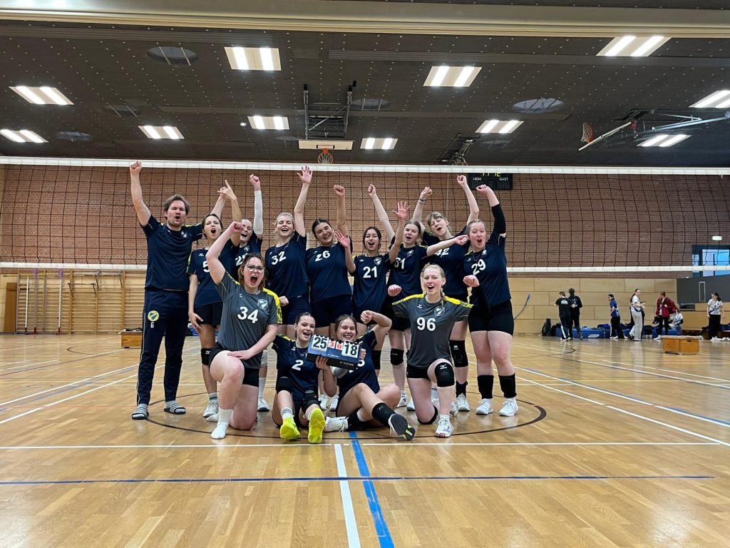 Viele Höhen und Tiefen verzeichnet die Spielzeit 2024/25 der ersten Volleyballdamen und seit dem 30.03. ist Schluss, jedenfalls fast. Nachdem man die Saison nach einem Fehlstart lange auf dem letzten Platz gestanden hatte, wurde in der Rückrunde die Aufholjagd gestartet und die Saison schließlich auf dem zehnten Platz beendet, mit Blick auf die Punkte sogar komfortabel vor den Abstiegsplätzen 11 und 12. Der Haken: Durch einen zusätzlichen Absteiger aus der Regionalliga gibt es in allen anderen Ligen ebenfalls einen zusätzlichen Absteiger – für die Damen heißt es im Mai also noch einmal um den Klassenerhalt kämpfen – in der Relegation gegen den Zehntplatzierten aus der anderen Staffel. Mit einem Happy End beenden derweil die zweiten Damen ihre Kreisliga-Saison. Am letzten Spieltag gelangen dem Team mit einem 3:0- und einem 3:1-Erfolg zwei Siege und der Tabellenplatz im Mittelfeld konnte gefestigt werden. Auch in der Jugend steuert die Saison gen Ende: Der U14m gelang es, sich mit dem Erreichen des zweiten Platzes der LK 2 am vorletzten Spieltag noch einmal für die erste Leistungsklasse mit den besten Teams Berlins zu qualifizieren, die U16m trat ebenfalls in der ersten Leistungsklasse an und schloss ihren Spieltag auf dem dritten Platz ab. Der U12m gelang es, sich für den Saisonhöhepunkt – die Berliner Meisterschaften – zu qualifizieren, der weiblichen U16 gelang die Qualifikation zum Jugendpokal – herzlichen Glückwunsch an alle Teams! Kurz vor einer kleinen Sensation standen auch die ersten Herren: Während sie sich in der zweiten Pokalrunde zunächst überraschend gegen Spandau II, in der höherklassigen Berlinliga spielend, mit 3:1 durchsetzen konnten, ging das zweite Spiel gegen das ebenfalls höherklassige Team vom BVV nach einem knappen ersten Satz jedoch mit 0:3 verloren, was mit dem Pokal-Aus gleichbedeutend war.