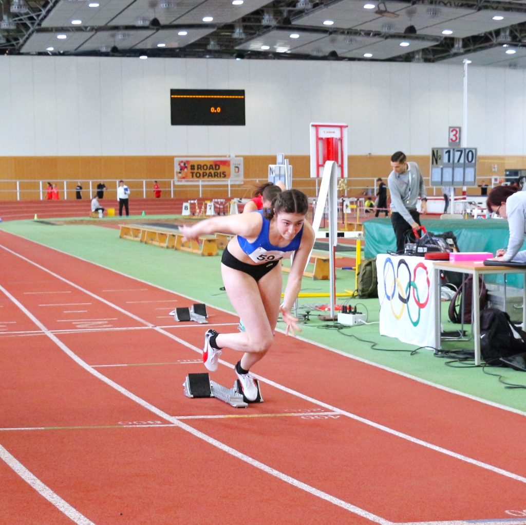 Olivia hatte die meisten Disziplinen der älteren Kladower U16 Sportlerinnen und Sportler zu absolvieren. Auf zwei Tage verteilt hieß es Kugel, 60 m-Hürde, Weitsprung und 60 m. Kai: „Ich habe sie am ersten Tag recht angespannt wahrgenommen, was sich im Weitsprung durchaus bemerkbar gemacht hat. Trotz Anlaufschwierigkeiten hat sie gekämpft und schließlich noch eine solide Weite herausgeholt. Auch wenn sie andere Ziele hatte und nicht ganz zufrieden war, bin ich stolz auf den Biss! Die 60 m waren top, vor allem der super Start und die klasse Zeit im 5. Vorlauf, die sie schließlich im Finale bestätigen konnte.“ Olivia: „Ich war mit dem Wettkampf nur einigermaßen zufrieden. Beim Weitsprung lief es nicht wie geplant. Der 60 m-Sprint war zwar besser und nur 9/100 hinter meiner PB, trotzdem war ich über den 6. Platz ein wenig unglücklich.“