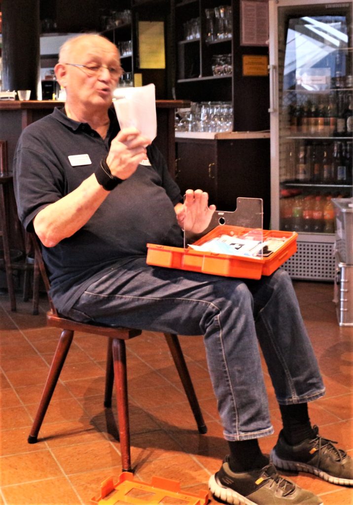 Ehrenamtlicher Erste-Hilfe-Ausbilder Thomas Plume vom Deutschen Roten Kreuz erläuterte eindringlich, aber auch durchaus mit Witz, was aus welchen Gründen wichtig ist beim ersten Helfen, was hinein gehört in einen ordnungsgemäßen Erste-Hilfe-Koffer, wie oft er überprüft werden soll, wer, gerade in einem Sportverein, dafür verantwortlich ist, wie sinnvoll es ist, sich mit den Fachwörtern auszukennen, mit Verbänden, Scheren, Gebrauchs- und Fixiermaterialien.