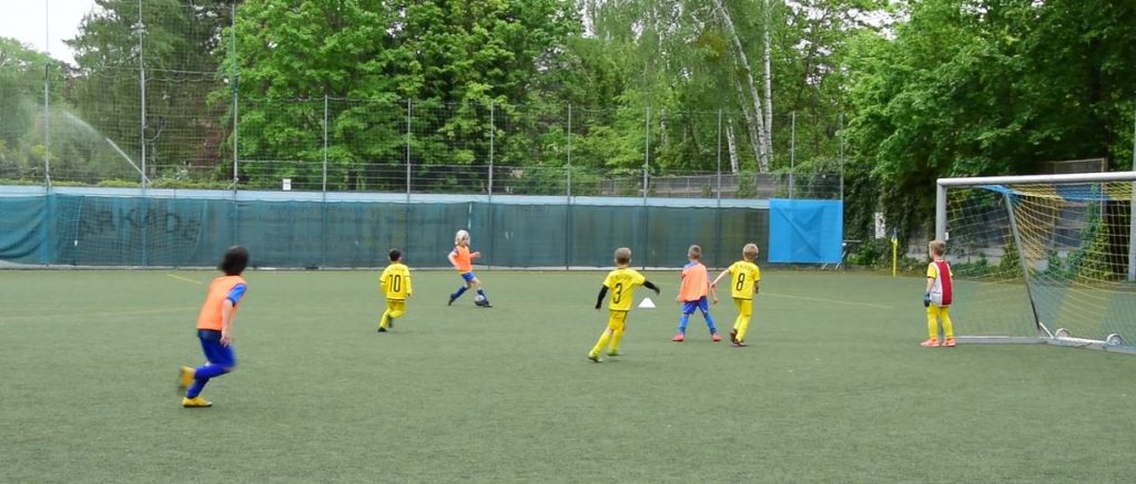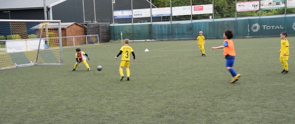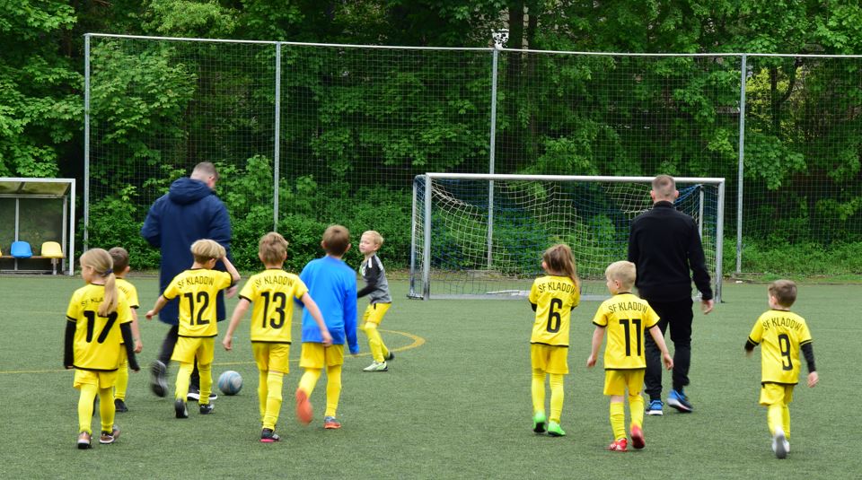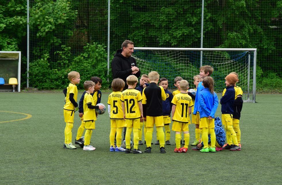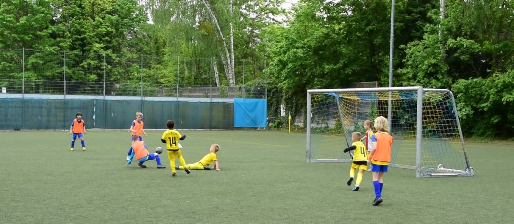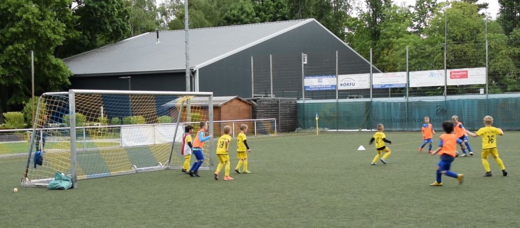 Letzten Samstag kickten die G-Junioren gegen die eigene F-Jugend des SF Kladow. Das Freundschaftsspiel diente zur Vorbereitung auf die bevorstehenden Turniere am langen Pfingstwochenende. Für Team Blau geht es Samstag zum Pfingst Cup der Reinickendorfer Füchse, bevor der Ball am Montag beim SC Staaken rollt. Team Gelb folgt einer Einladung zum Pfingstturnier des SSC Teutonia.