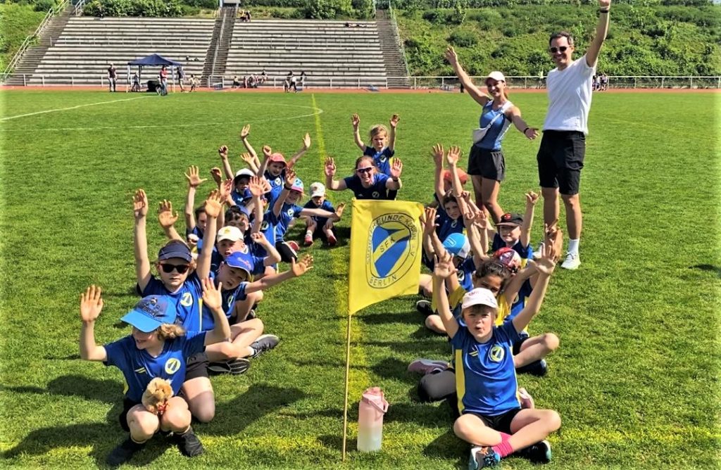 Besonders beeindruckend war die Teamleistung beim Biathlon: keine(r) unserer Biathlet*innen musste auch nur einen einzigen Meter der Laufstrecke alleine zurücklegen. Bei jedem Schritt und Tritt wurden sie von ihren Mannschaftskolleg*innen mit wehenden SF Kladow-Fahnen auf dem Rasen begleitet und schlussendlich lautstark über die Ziellinie gepeitscht. Es war schön anzusehen, wie sichtbar der Zusammenhalt im Team ist und am Ende auch zu tollen Erfolgen führte.