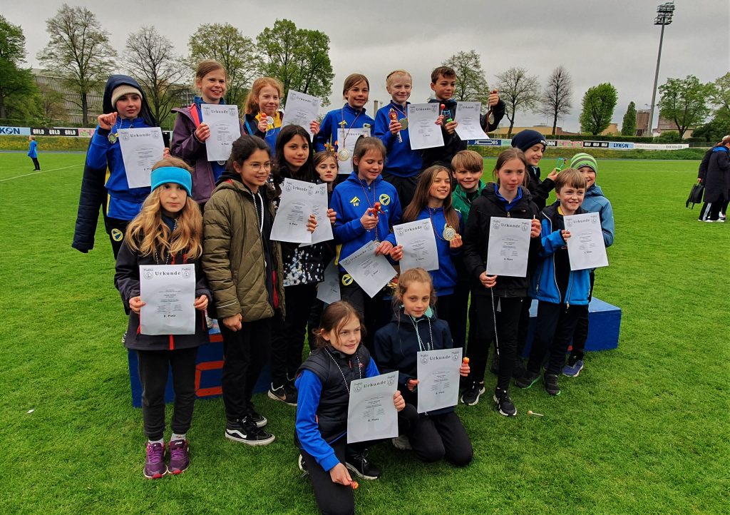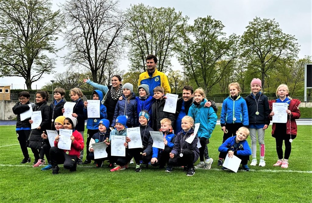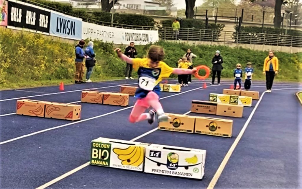 Die U10 traf es schließlich besonders hart beim Sprint. Hier wurden eine gefühlte Ewigkeit die Startaufstellungen geändert, was mit mehrmaligem „Jacke-an-Jacke-aus“ an den Nerven zehrte. Für sie standen eine Weitsprung- und Hürden Pendel-Staffel auf dem Wettkampfplan, dazu kamen Schlagwurf und ein 40-Meter-Sprint.