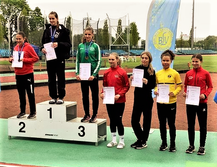 Das Wetter zeigte sich inzwischen (bis auf den Wind) von seiner besten Seite, als es kurz danach zum Speerwurf ging. Auch das hatte sie in den letzten Monaten nur zwei Mal trainieren können, der Spaß am Wurf und das Selbstbewusstsein reichten an diesem Tag aber dennoch aus, um in die Nähe ihrer Bestleistung zu kommen und den Speer bei 36,78 m landen zu lassen. Da die bis dahin in Führung liegende Finja Sommer (RSV Eintracht Berlin) vom strengen Kampfgericht mit drei ungültigen Versuchen aus dem Wettkampf geschickt wurde, kam es zum Duell über die 800 m. Mit ein paar Punkten Vorsprung ging Annika auf die Strecke, immer nah dran an der Zweitplatzierten Lotta Edzards (LG Nord), um sie dann im Endspurt zu überholen und in ordentlichen 2:40 min. ihren ersten Berlin-Brandenburger Meistertitel im Siebenkampf perfekt zu machen.