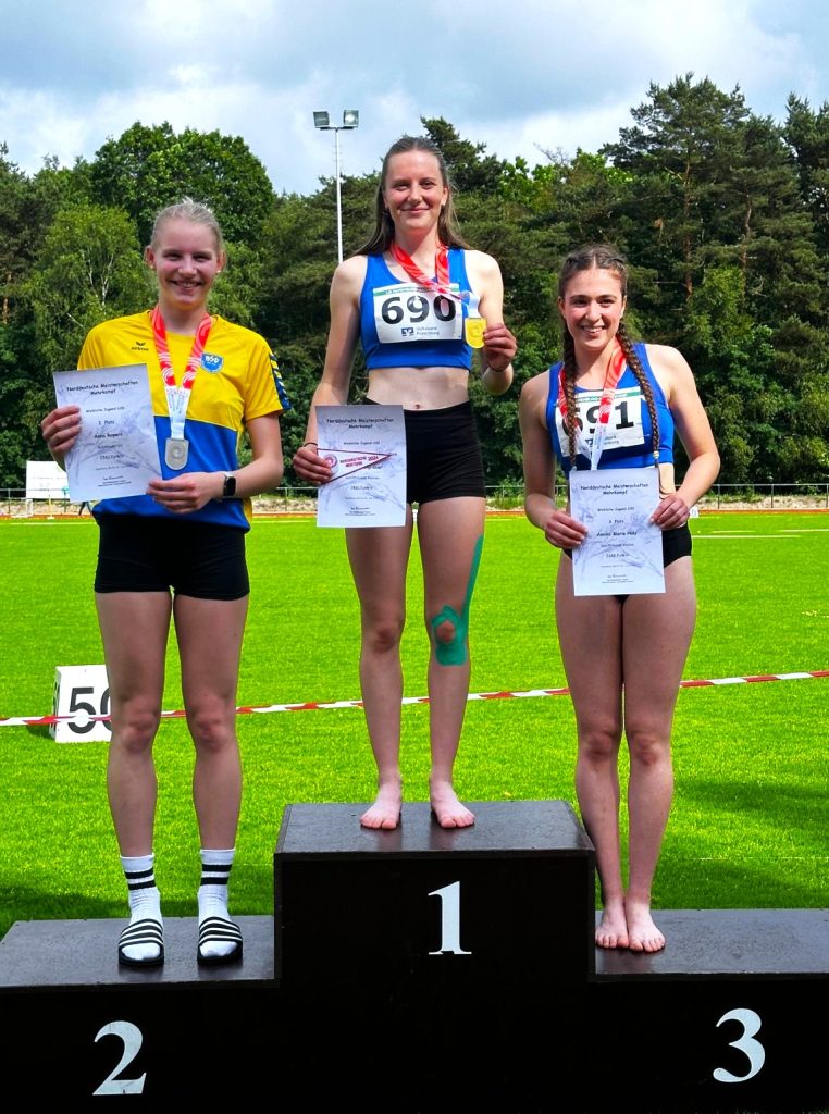 Unter den insgesamt elf U20-Mehrkampf-Teilnehmerinnen kam Annika in der Wertung des Vierkampfes und im Siebenkampf auf Platz 3 und Lole gelang das Doppel auf Platz 1. Somit war das Treppchen in Papenburg mit zwei Kladower Sportlerinnen besetzt – großartig Mädels!