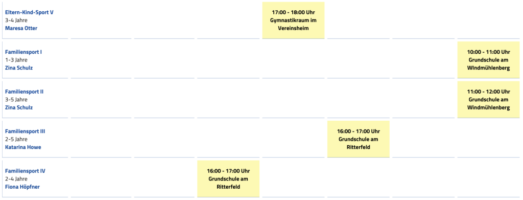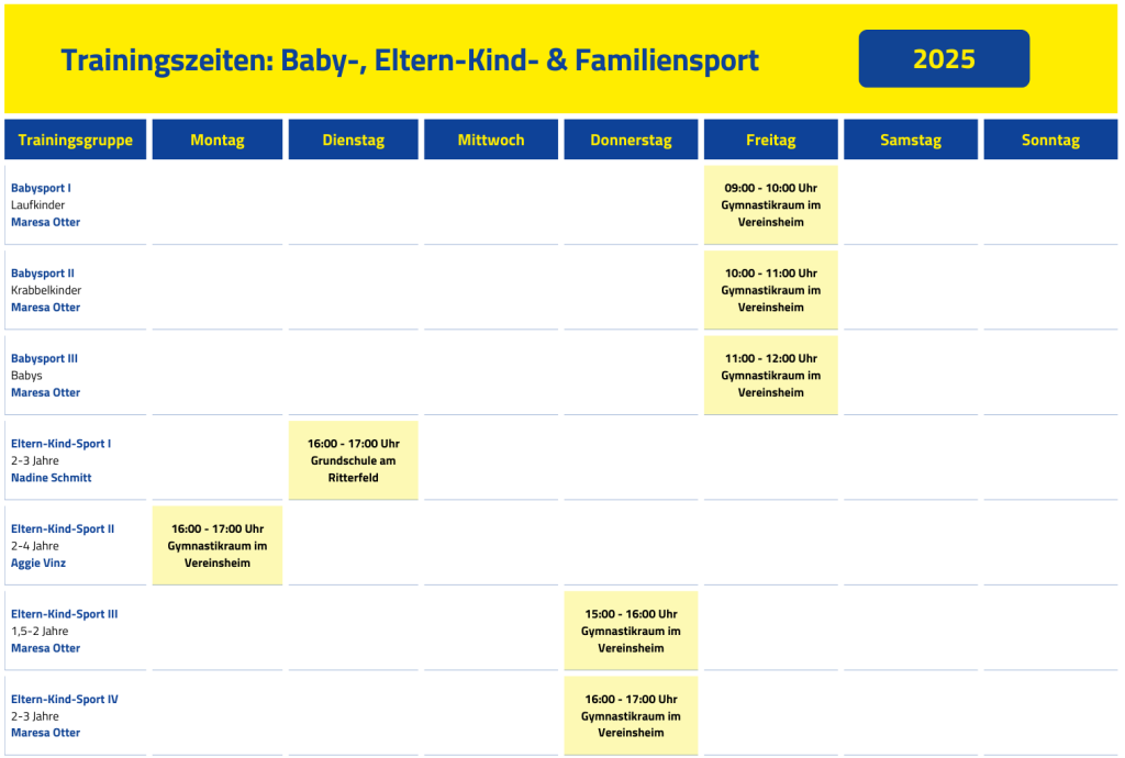 Trainingzeiten Sektion Baby-, Eltern-Kind- & Familiensport
