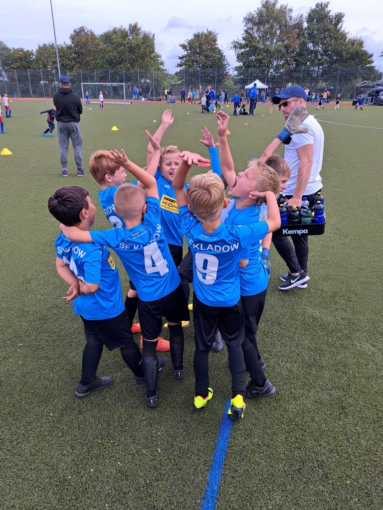 Am vergangenen Sonntag ging es für die F2-Jugend nach Rethwisch, in der Nähe von Rostock. In einem klasse besetzten Turnier standen den Jungs schon in der Vorrunde teilweise sehr hart umkäpfte Spiele bevor. Hier mussten sie sich nur dem späteren Turniersieger aus Eberswalde geschlagen geben. In der Finalrunde holten unsere Kicker nochmal alles aus sich heraus und schafften, nach einem anfänglichen Zwei-Tore-Rückstand gegen den BFC Dynamo, kurz vor Spielende noch den Ausgleich. Im anschließenden Elfmeterschießen konnte unser Torwart gleich zwei Bälle des Gegners halten und unterstrich damit seine top Leistung vom gesamten Turniertag. Dank der starken Nerven der Schützen des SFK entschied das Team somit das Spiel für sich und sicherte sich den 7. Platz von 20 Mannschaften. Ein schöner Turniertag für alle Spieler, Trainer, Eltern und Fans!