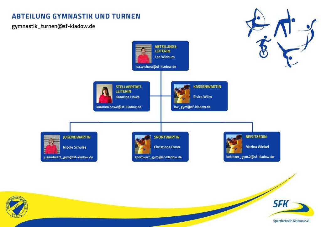 Die Abteilung Gymnastik & Turnen umfasst die Sportartenbereiche Turnen, Tanzen, Kunst-/Einradfahren und Gesundheitssport. Die Leitung der vier Sportartenbereiche geschieht durch den Vorstand der Abteilung Gymnastik & Turnen
