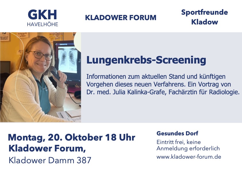 Auch im Oktober möchten wir gemeinsam mit dem Krankenhaus Havelhöhe und dem Kladower Forum ein weiteres Gesundheitsthema durchleuchten. Frau Dr. Kalinka-Grafe – Fachärztin für Radiologie – gibt uns Einblicke zum Thema: