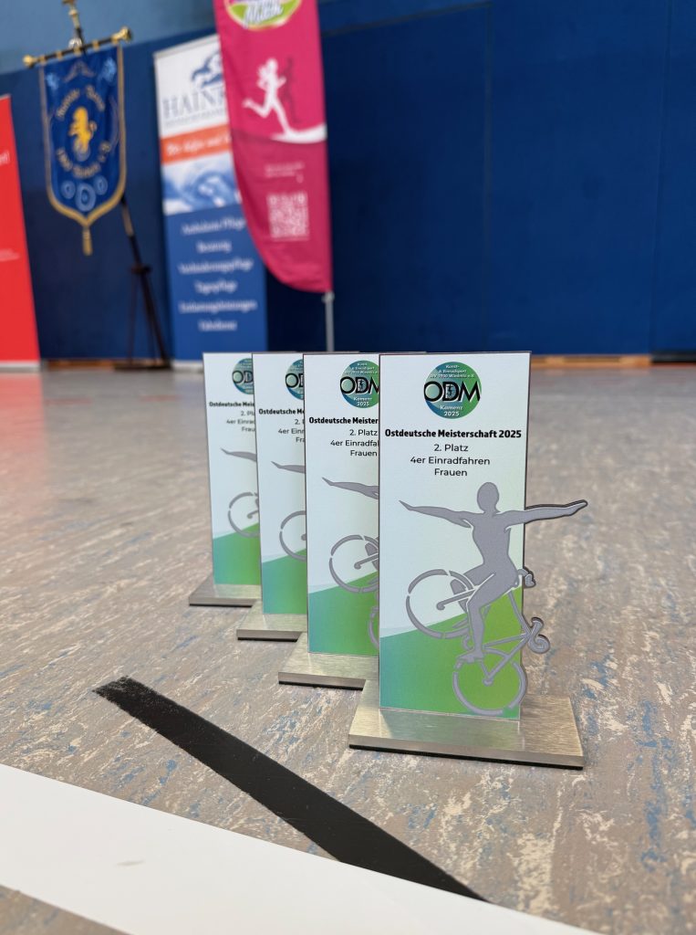 Zwei große Events standen im Juni für unsere Kunst- und Einradfahrer*innen auf dem Programm: Zunächst durfte Lea die Sportfreunde Kladow bei den Deutschen Hallensportmeisterschaften der Schülerinnen vertreten – Erfahrungen zu sammeln spielte dabei die entscheidende Rolle und der 23. Platz war am Ende Nebensache! Eine Woche später wurden schließlich die Ostdeutschen Meisterschaften ausgetragen: Dort wiederum wurde Lea Zweite im 1er Kunstrad (U15), ebenso wie Melina, Johanna, Charlotte und Katarina, die Platz 2 in der 4er Einrad-Konkurrenz der Frauen belegten. Weitere Top-Ten-Platzierungen für Henri (Schüler U11), Karoline (Schülerinnen U11), Katarina (Frauen) und Pauline (Schülerinnen U13) rundeten das erfolgreiche Wochenende ab!