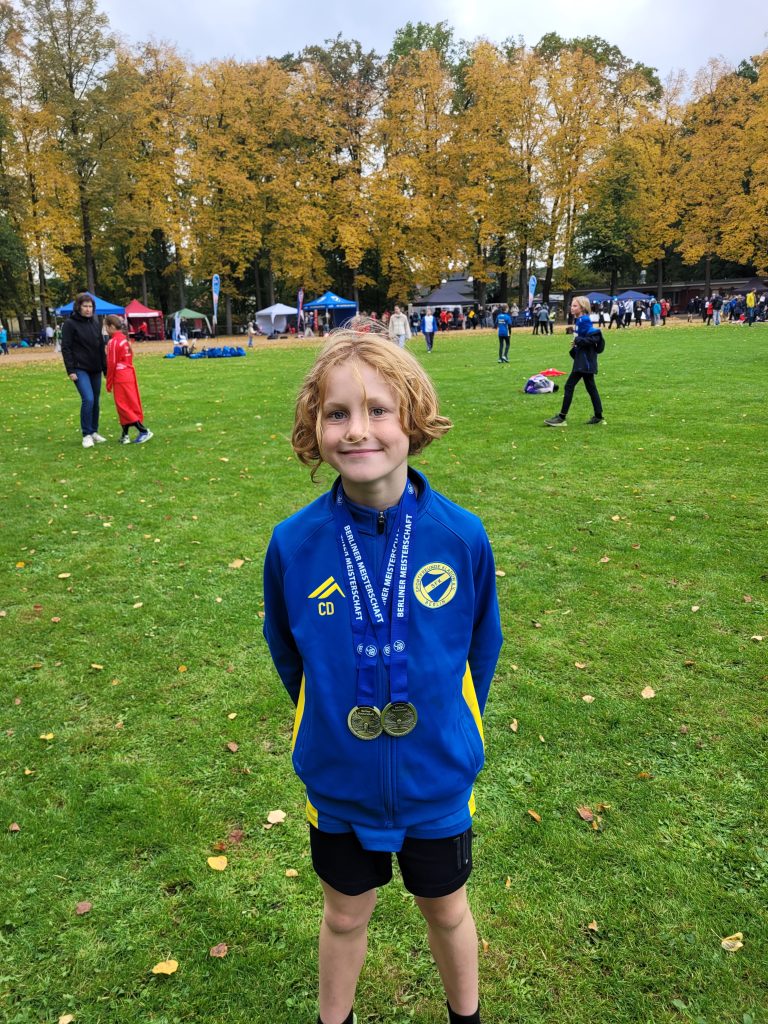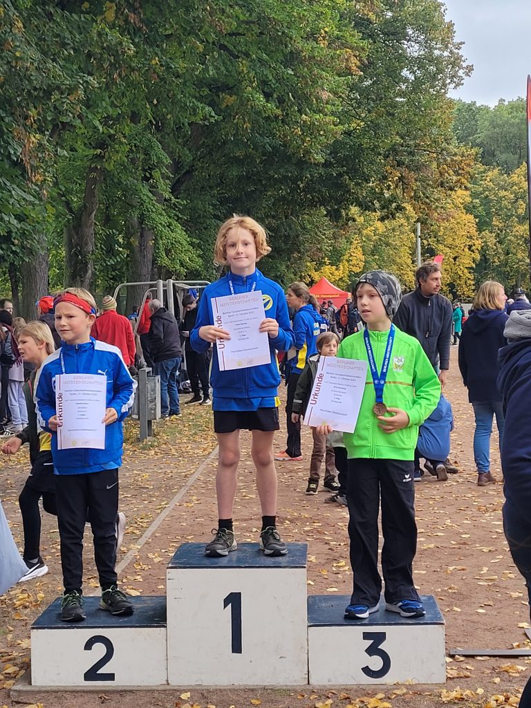 Beim Berliner Crosslauf hat die U10 M die Mannschaftswertung souverän gewonnen und ist damit Berliner Meister! Auch in der M 8 konnten wir mit Cillian den neuen Berliner Meister stellen und Finnian hat einen starken 4. Platz in der M9 belegt. Bei der U10 W ist die Mannschaft mit dem dritten Platz ebenfalls auf dem Siegertreppchen gelandet und Sara und Lara konnten sich in der Einzelwertung W8 den 3. und 4. Platz sichern. Die Mannschaft der U12 hat sich mit Artur, Felix und Tobias den 4. Platz erkämpft und Tobias hat in der Einzelwertung den 5. Platz erreicht. Insgesamt ein erfolgreicher Wettkampf – allen beteiligten Athleten einen herzlichen Glückwunsch!