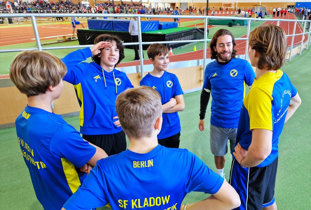 Olivia hatte die meisten Disziplinen der älteren Kladower U16 Sportlerinnen und Sportler zu absolvieren. Auf zwei Tage verteilt hieß es Kugel, 60 m-Hürde, Weitsprung und 60 m. Kai: „Ich habe sie am ersten Tag recht angespannt wahrgenommen, was sich im Weitsprung durchaus bemerkbar gemacht hat. Trotz Anlaufschwierigkeiten hat sie gekämpft und schließlich noch eine solide Weite herausgeholt. Auch wenn sie andere Ziele hatte und nicht ganz zufrieden war, bin ich stolz auf den Biss! Die 60 m waren top, vor allem der super Start und die klasse Zeit im 5. Vorlauf, die sie schließlich im Finale bestätigen konnte.“ Olivia: „Ich war mit dem Wettkampf nur einigermaßen zufrieden. Beim Weitsprung lief es nicht wie geplant. Der 60 m-Sprint war zwar besser und nur 9/100 hinter meiner PB, trotzdem war ich über den 6. Platz ein wenig unglücklich.“