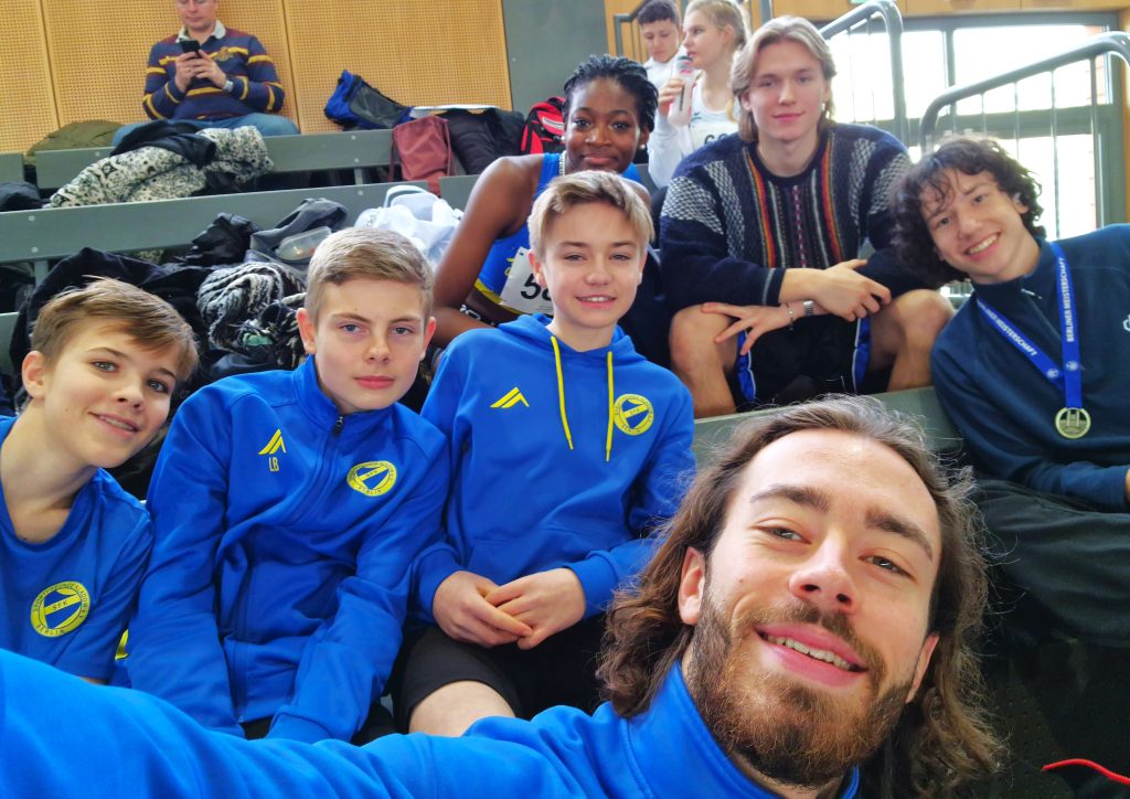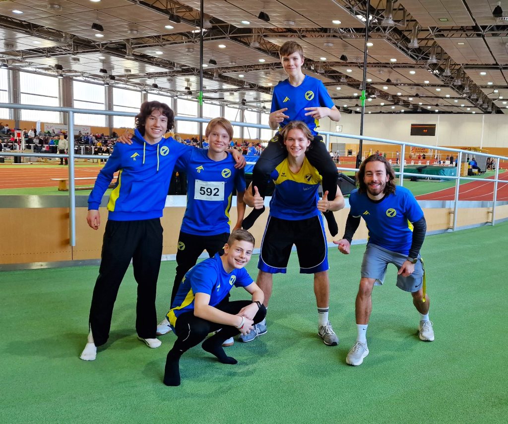 Über drei Monate Vorbereitung zahlten sich an diesem Wochenende aus. Am Samstag starteten aus der M14 Jonathan, Luis, Lennox, Caspar, Florens und Sebastian über die 60m und beim Weitsprung. Im Sprint gab es einige neue Bestleistungen. Am Ende konnte es Jonathan mit einer Zeit von 7,99 sek. in den Finallauf schaffen, in dem er seine Zeit noch einmal auf 7,8 sek. verbesserte und Zweiter wurde. Im Weitsprung waren auch alle Sportler dabei. Hier schaffte es Florens mit 4,83m auf den siebten Platz und Jonathan wurde zweiter mit 5,42m. Besonders stolz sind wir darauf, dass wir immer als Team an den Start gehen, egal wie weit die Leistungen auch auseinander liegen, alle sind mit dabei!