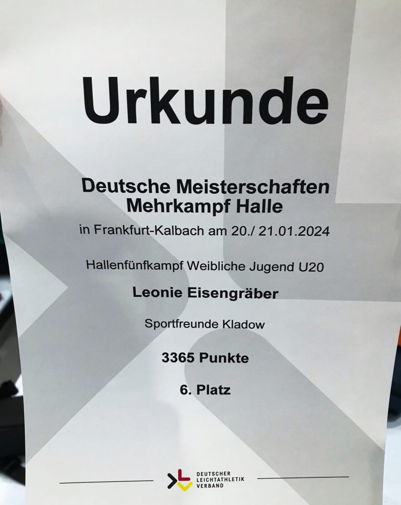 Am dritten Wochenende des Jahres 2024 war viel los bei den Leichtathleten, während Lole bei den Deutschen Meisterschaften, gute 500 km entfernt in Frankfurt einen Fünfkampf absolvierte, startete ihre Teamkollegin Annika (U20) bei den Berlin-Brandenburgischen Meisterschaften der U20 in Potsdam in der Halle am Luftschiffhafen in vier Disziplinen, allerdings verteilt auf das gesamte Wochenende: Annika wollte sich im Weitsprung, bei den 200 m, den 60 m-Hürde und beim Kugelstoßen messen.
