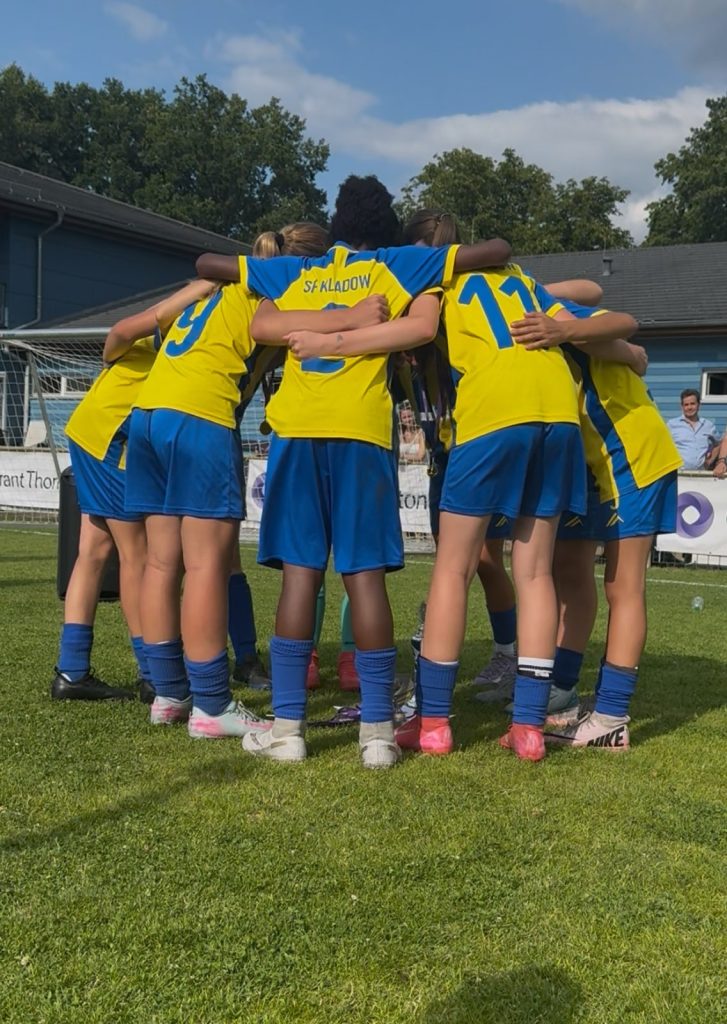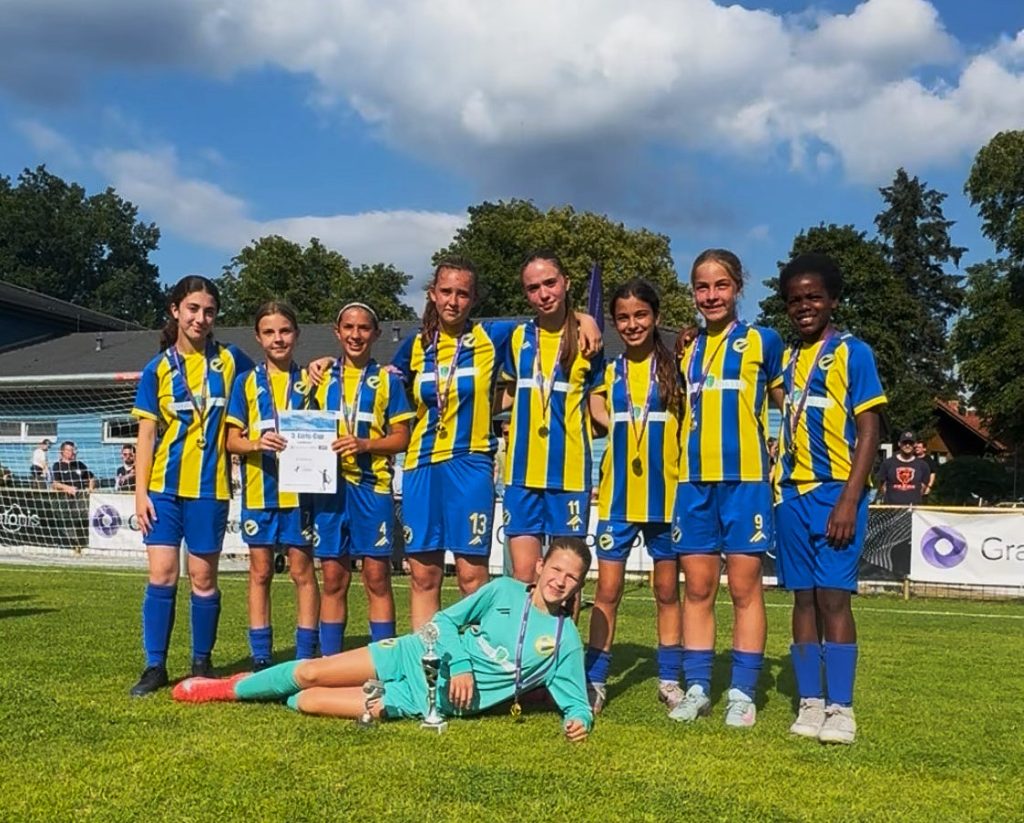 Auch wenn die aktuelle Fußballsaison zu Ende ist, zog es die Kladower D1-Juniorinnen am gestrigen letzten Juni-Samstag in die Niederheide zum SV Blau Weiß Hohen Neuendorf. Beim „Grant Thornton Girls-Cup 2025“ kämpften 11 Mannschaften von 10-17 Uhr im Modus „Jeder gegen Jeden“ – mit dabei durchaus namhafte Vereine, wie z.B. Hertha BSC, der Köpenicker FC, GW Neukölln, BSC Rehberge, A. Cöpenick und auch zwei Teams des schwedischen Vereins Vimmerby IF und die Spielerinnen vom SF Kladow mittendrin.