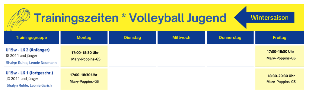 Willkommen bei unseren Volleyballmädchen im Alter von 13 Jahren und jünger