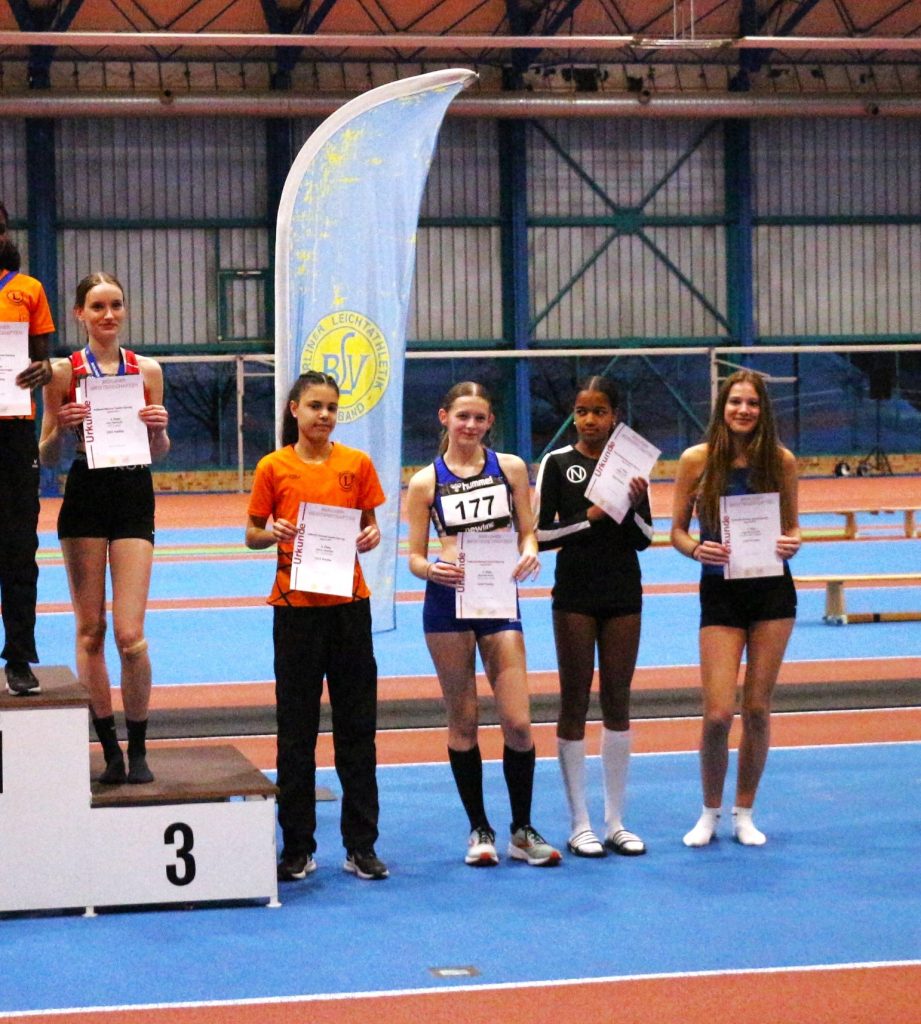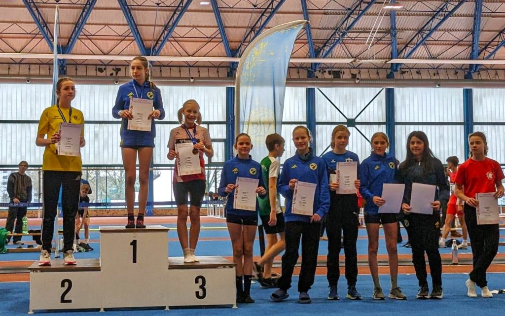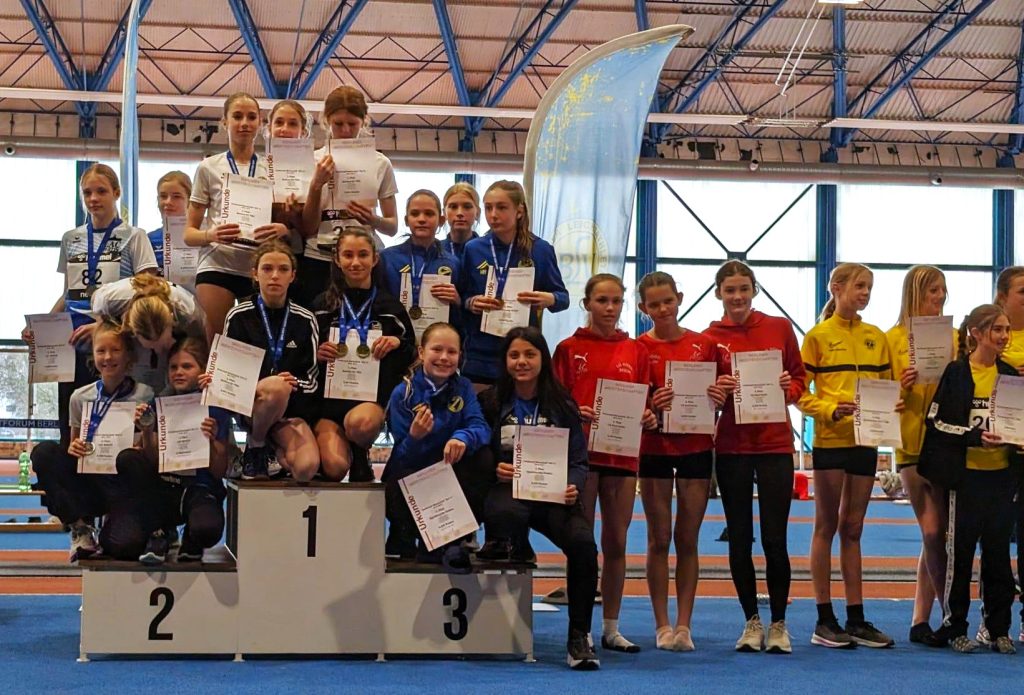Bei der Siegerehrung dominierten die Farben blau gelb mit Melissa als neue Berliner Meisterin im Hallen-Mehrkampf, mit Vanessa, Jana, Charlotte und Vanesa, die sich die Plätze 4, 5, 7 und 8 erkämpft haben. Malina belegte mit nur 29 Punkten weniger einen guten 14. Platz und Lennja, die erst seit wenigen Monaten bei der Leichtathletik ist, einen tollen 37. Platz.