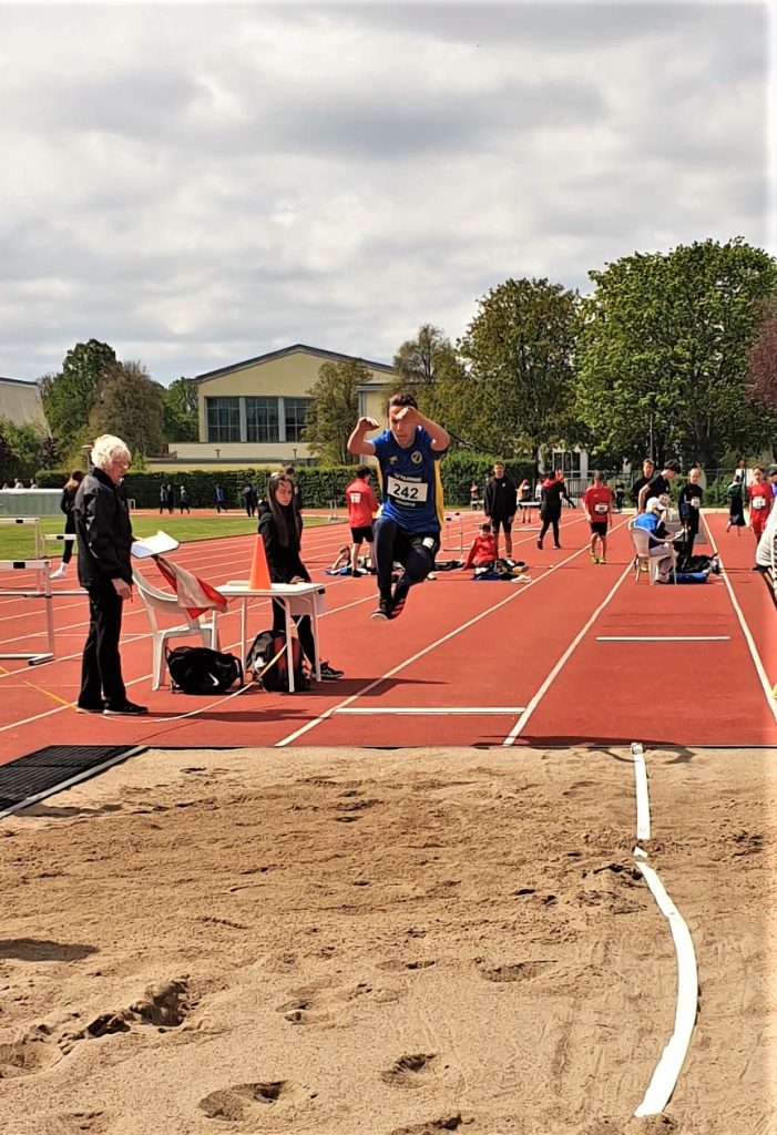Das Wetter war um Längen besser. Til und Erik starteten im Block Wurf und belegten Bronze und einen tollen vierten Platz. Auch Til ging mit einer Verletzung der rechten Hand an den Start. Das Kugelstoßen gleich zu Beginn war seine größte Sorge. Die Weiten mit Handicap harmonierten nicht mit seinem Können, brachten ihm aber dennoch wertvolle Punkte für die Gesamtwertung. Die Weiten beim Kugel und Diskus entsprachen nicht Tils Vorstellungen, dafür passte die beim Weitsprung, endlich die 5m-Marke geknackt. Auch sonst erkämpften sich die beiden viele Pbs auf dem schweren Weg durch den Block Wurf. Toll gemacht, Jungs, weiter so!