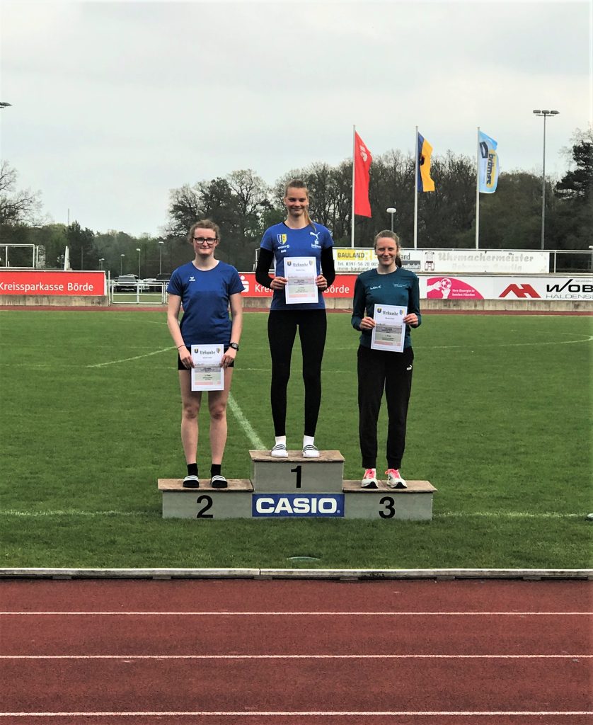 Ein Tag mit Höhen und Tiefen, nicht nur beim Wetter lief einiges schief. Leider sind Lara und Sina verletzt und konnten nicht starten bzw. mussten den Wettkampf abbrechen. Anna wird sechste mit einem tollen Wettkampf: Sie verlor jedoch beim 2000 m-Start einen Schuh, und dadurch einige Meter – das war nicht märchenhaft. Bis sie den Spike wieder an hatte, kostete sie das für die Gesamtwertung wertvolle Punkte. Nach dem Anziehen begann die Aufholjagd – bis zur 7. Stelle konnte sie sich vorkämpfen. TOP Anna, super gemacht! Leonie bringt trotz Sturz bei der Hürde den Wettkampf zu Ende und optisch eine riesige Beule am Knie mit nach Hause. Hier zeigten beide Sportlerinnen großartigen Kampfgeist. Allen gute Besserung und Erholung.
