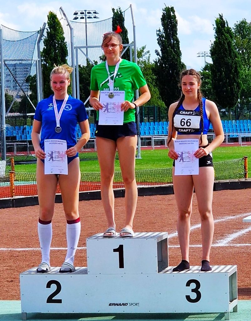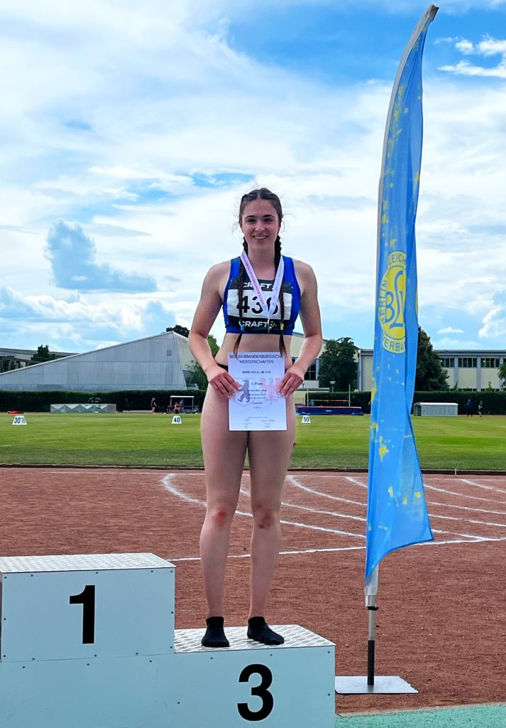 Wie bei den jüngeren Kladower Athletinnen startete der Wettkampf natürlich auch bei Annika (U20) feucht fröhlich…