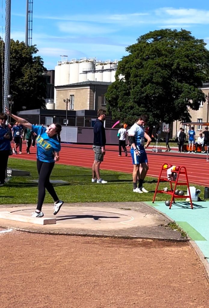 Das Kugelstoßen startete mit einigen Komplikationen, da die ersten beiden Stöße leider ungültig waren. Also blieb als dritter Versuch nur noch ein Sicherheitsstoß aus dem Stand und brachte somit wertvolle Punkte.