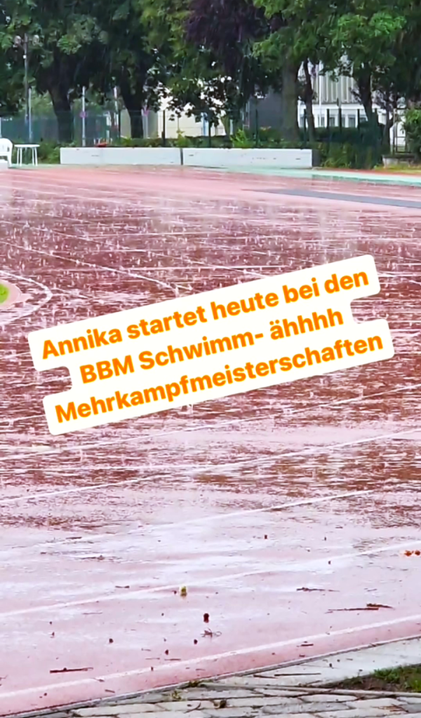 Am Wochenende fanden die Berliner Meisterschaften im Mehrkampf der U16 in Hohenschönhausen statt. Da Lea dieses Jahr aufgrund voll geplanter Wochenenden an kaum einem Wettkampf teilnehmen konnte, überlegten wir, dass sie doch einfach einmal aus Spaß bei einem Siebenkampf der U16 antritt. Am Samstagmorgen holten Svenja und ich Lea von zu Hause ab und fuhren gemeinsam bei Sonnenschein los in Richtung Hohenschönhausen. Leider hielt sich das schöne Wetter nicht und kurz bevor wir ankamen, fing es sehr stark an zu regnen – der Sportplatz im Sportforum stand unter Wasser und der Wettkampfstart wurde um sage und schreibe zwei Stunden und 15 Minuten nach hinten verschoben. Jetzt hieß es also im warmen Auto sitzen und sich die Zeit irgendwie vertreiben…