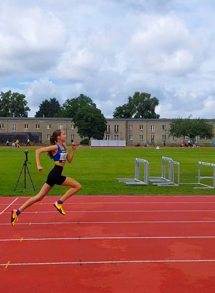 Nach kurzer Vorbereitung ging es in den Hürdenwald. Im Vorlauf war sie bei 3 m/s Rückenwind noch etwas zurückhaltend, aber im Finale lief sie deutlich aggressiver und kam mit 16,19 s auf Platz 6.