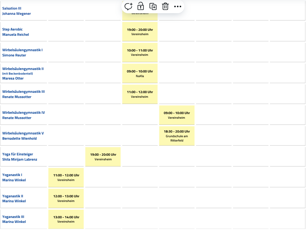 Alle Informationen zu Trainingszeiten, -orten und Kursleiter*innen findet ihr auf dieser Seite. Schaut euch unser gesamtes Kursangebot im Überblick an oder sucht beispielsweise gezielt nach unseren Angeboten im Gesundheits- oder Outdoorbereich.