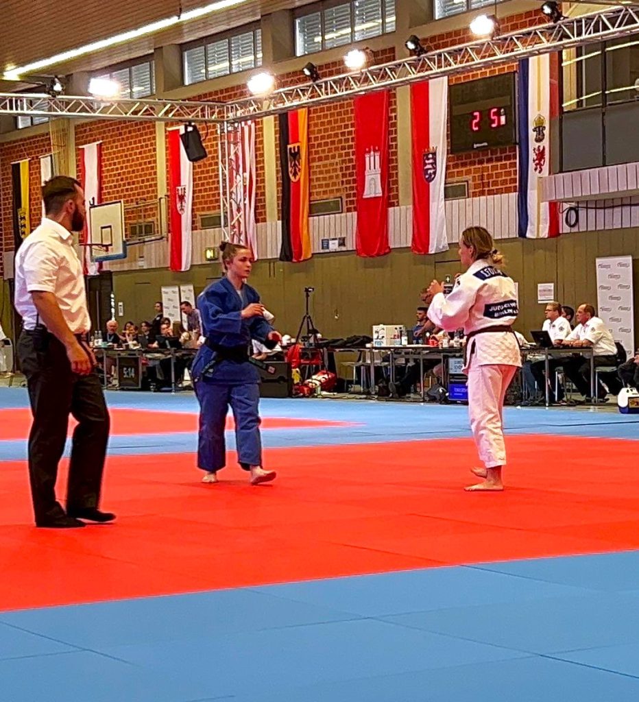 Mit einem schnellen Sieg startete Svenja in der Gewichtsklasse -57kg gegen Lisa Marie Walz aus Brandenburg und verlor den anschließenden Kampf nach drei Minuten Golden Score gegen Silva Müntzenberg aus Sachsen nur knapp mit Waza-Ari*.