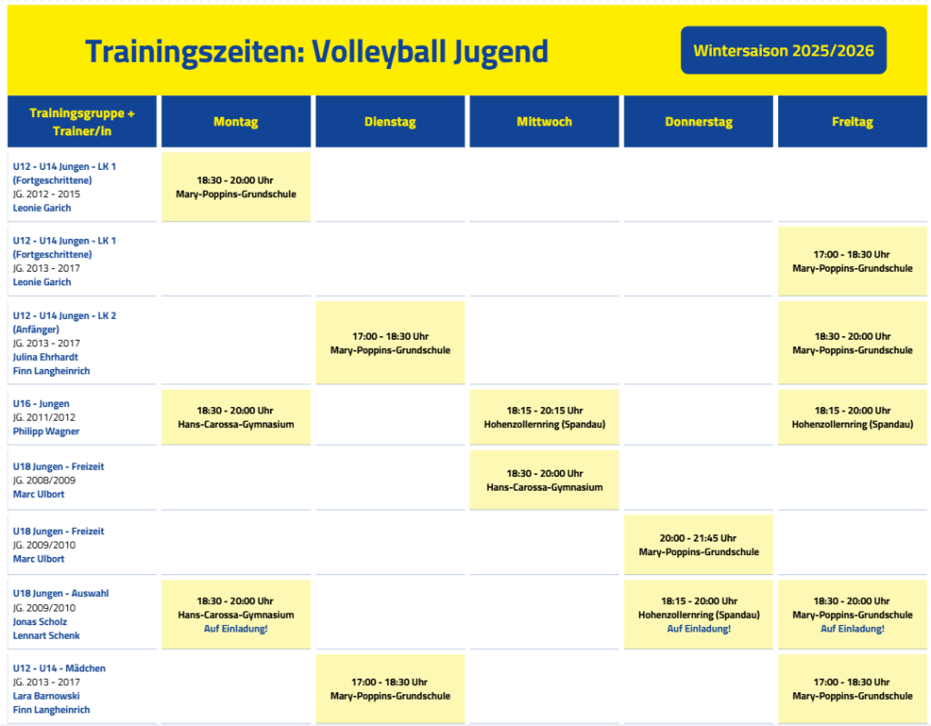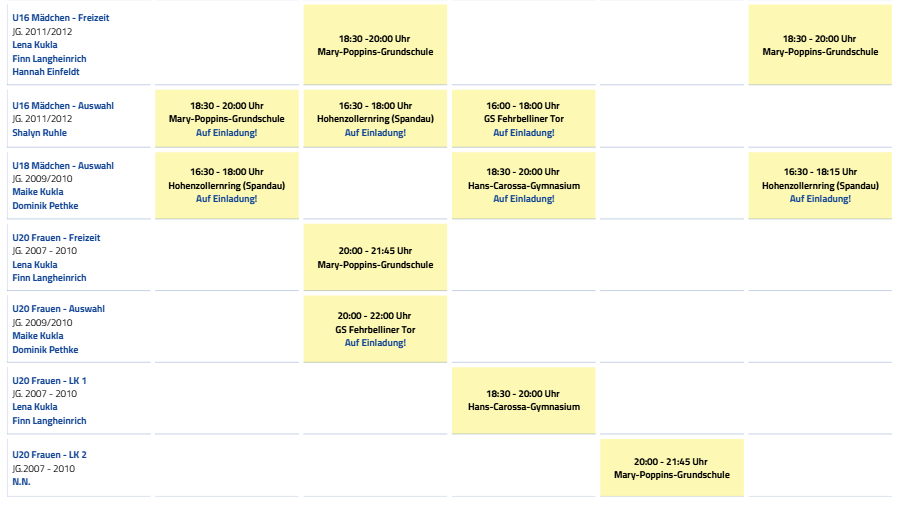 hier findet ihr einen Überblick über unserer Jugendmannschaften und wann sie bei wem/wo trainieren: