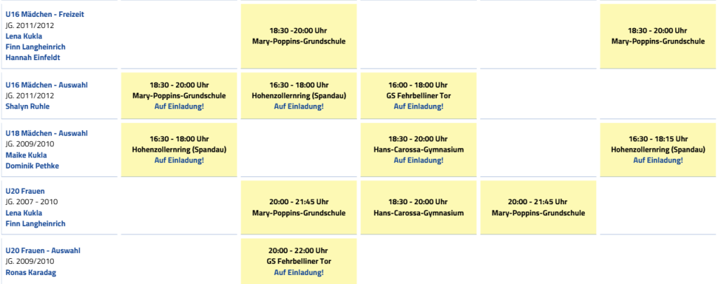 hier findet ihr einen Überblick über unserer Jugendmannschaften und wann sie bei wem/wo trainieren: